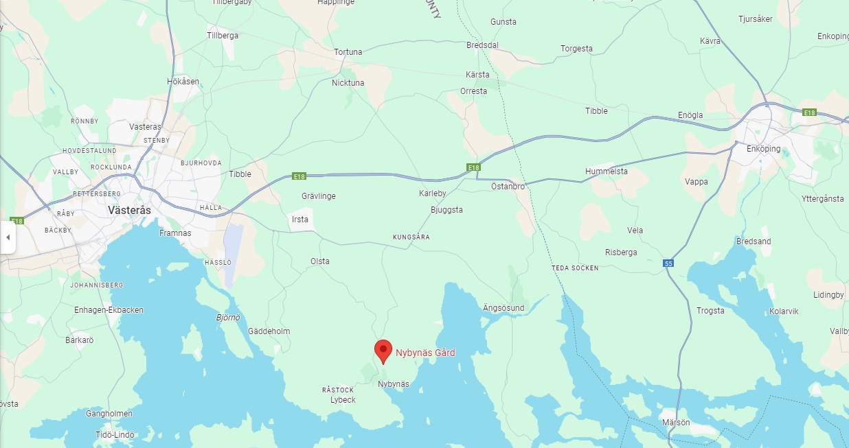 Nybynäs Gård är som namnet säger, en gård vackert belägen ute på landet mellan Enköping och Västerås. Själva vigseln kommer ske utomhus på en gräsvall i nära anslutning till festlokalen. Om vädret mot förmodan inte tillåter oss att vara ute kommer vigseln ske på samma ställe men inomhus.